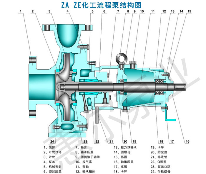 ZE重型石油化工流程泵适合输送清洁或含有少量颗粒的液体,低温的、高温的、中性的、有腐蚀的液体,泵盖具有冷却或加热管接头,轴封采用单端面或双端面机械密封,配有冷却、冲洗或密封液系统。