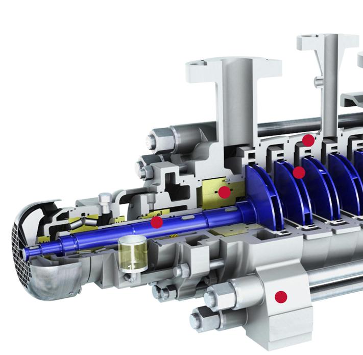 • 平衡鼓加轴向推力轴承的设计,使泵即使在极端运行工况下,仍能维持长使用寿命,