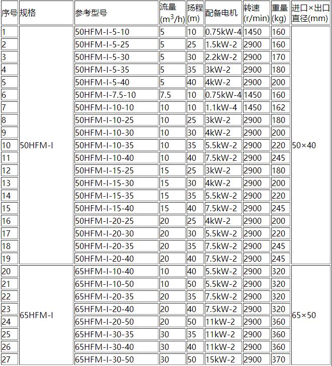 聚丙烯(P):用于无固相物料的清液的输送。例如废气处理系统的逼压喷淋泵(烟气脱硫等)。