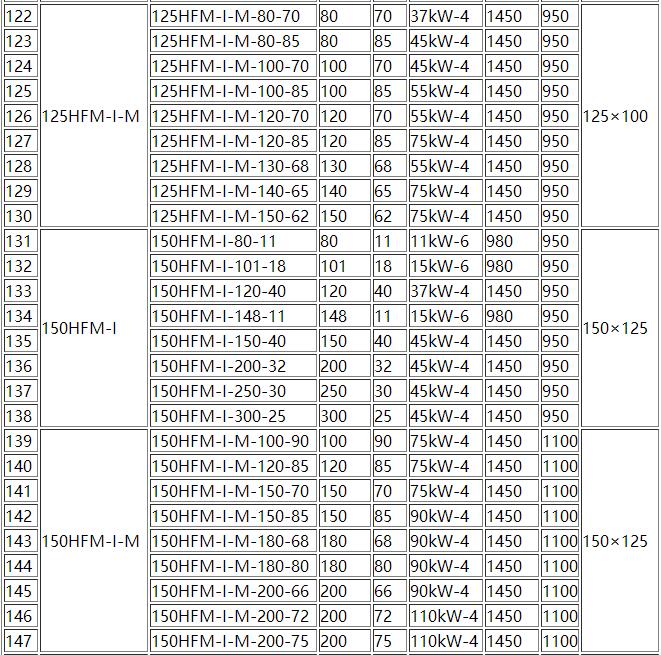 表中配备电机功率是在密度ρ=1时的参考值,实际电机功率应大于轴功率×介质密度ρ。